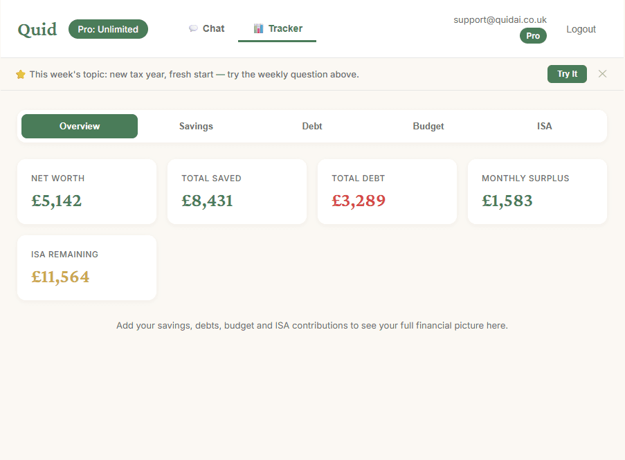 📊 Personal finance tracker — savings goals, debt, budget and ISA allowance